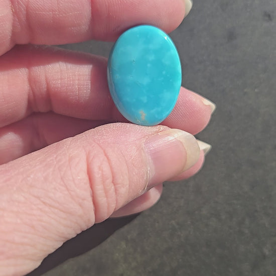 A lovely piece of Hardy Pit Turquoise from the Kingman mine. This is rare and hard to find material. This stone has a nice bright saturated blue to green color play that will stand out in any piece of jewelry.