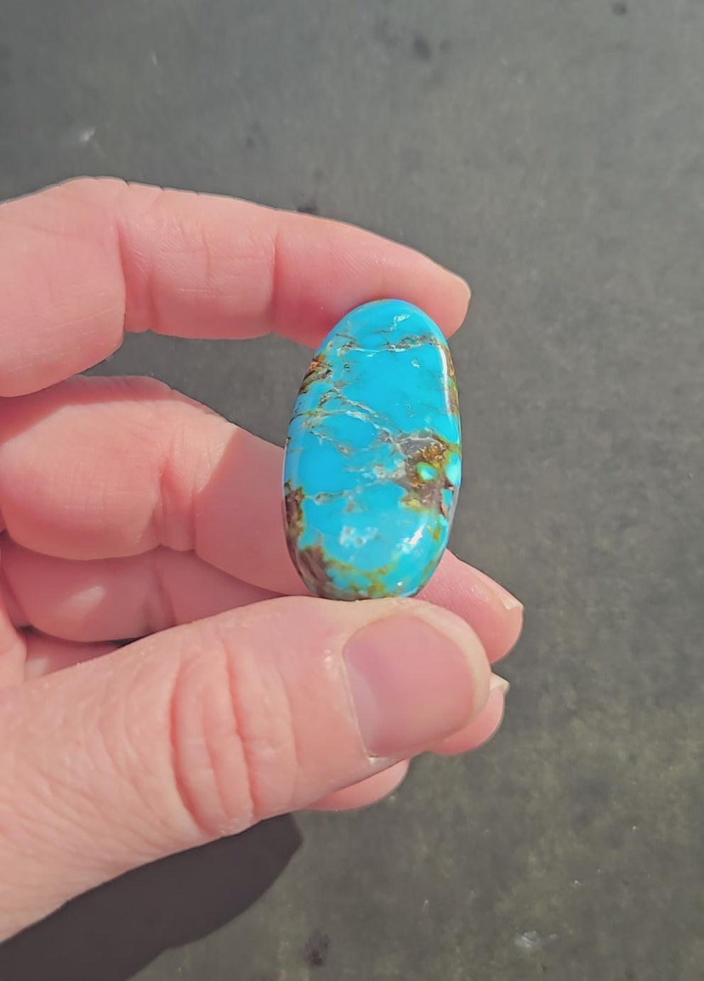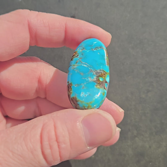 A very striking piece of AAA High Blue KingmanTurquoise. Known for its beautiful colors, Red Web Turquoise is known for its unique matrix patterns and variations, typically the presence of distinctive red or brown spiderweb. In the industry, the Kingman Mine, has also set the standard for blue matrix turquoise. This stone has beautiful color play that will stand out in any piece of jewelry.