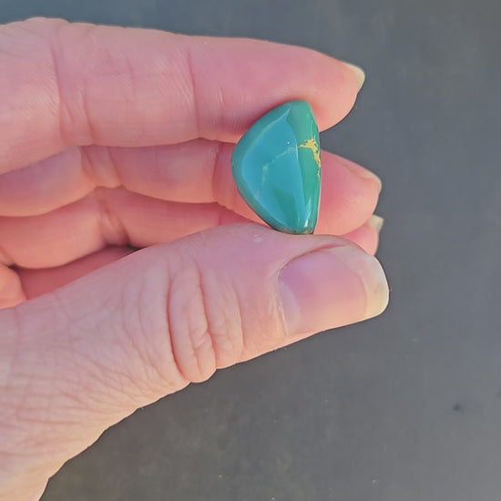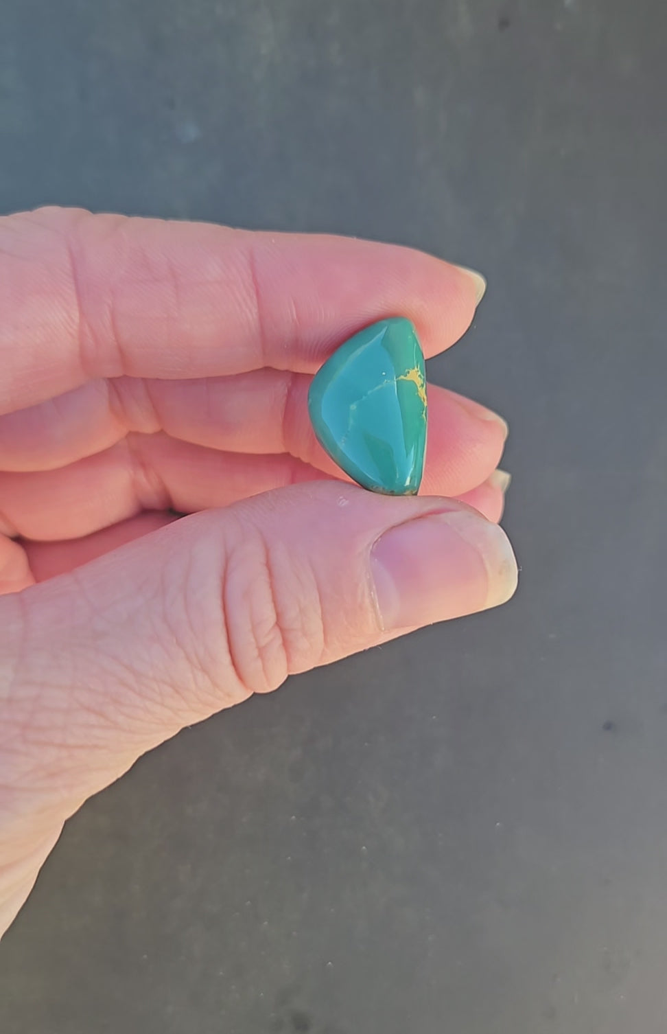 A lovely piece of high grade Green Hardy Pit Turquoise from the Kingman mine. This is rare and hard to find material. This stone has a nice bright saturated green color play that will stand out in any piece of jewelry.