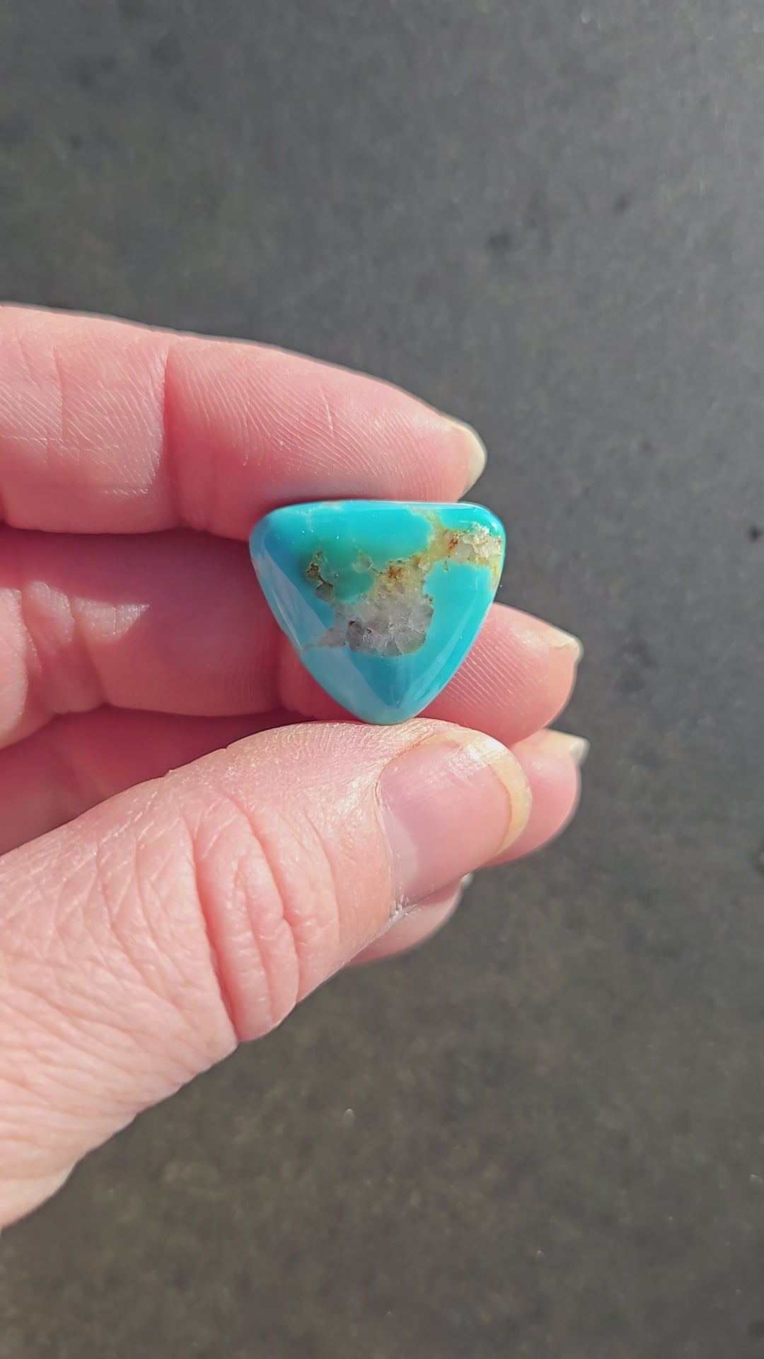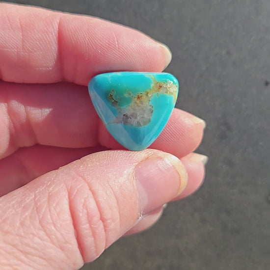 A lovely piece of AAA Polychrome Hardy Pit Turquoise from the Kingman mine. This is rare and hard to find material. This stone has a nice bright saturated blue to green color play that will stand out in any piece of jewelry.