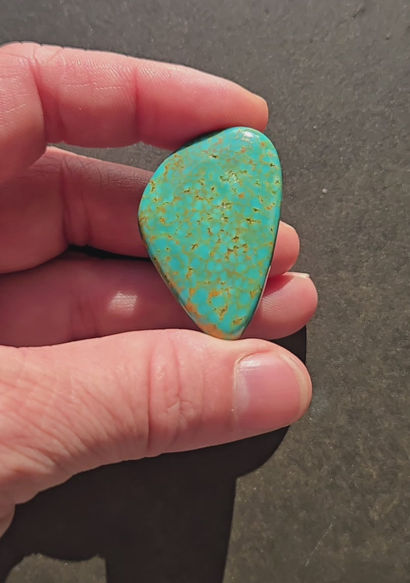 A lovely piece of Turquoise Mountain from the Kingman mine. This is rare and hard to find material. This stone has a nice bright saturated blue to green color play that will stand out in any piece of jewelry.
