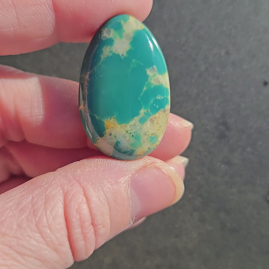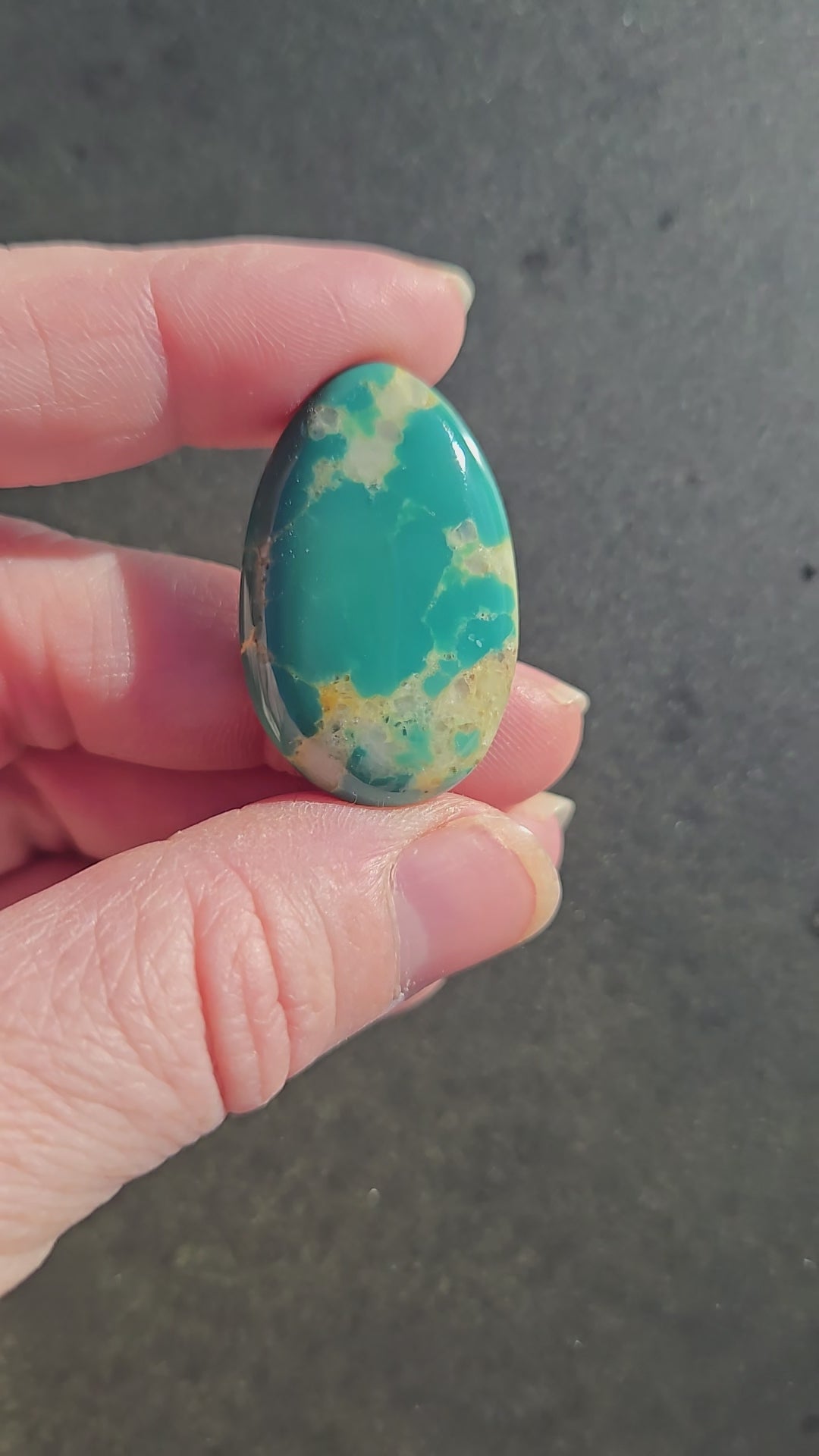 A stunning piece of Turquoise Mountain from the Kingman mine. This is rare and hard to find material. This stone has a nice bright saturated blue to green color play that will stand out in any piece of jewelry.
