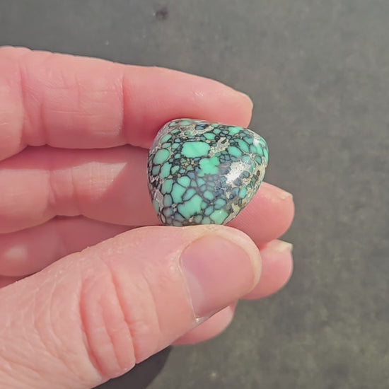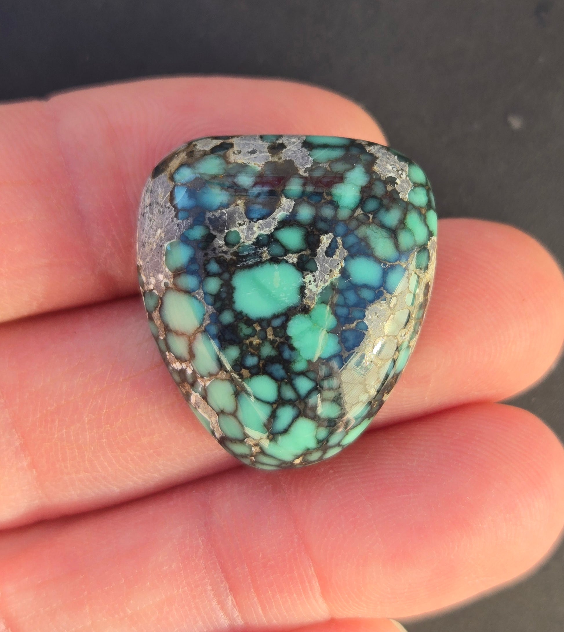 This is a beautiful piece of rare and old Blue Boy Variscite. The unique shape and color of the gemstone make it a one-of-a-kind addition to any jewelry collection. This cabochon is perfect for those looking to add a touch of elegance to their handmade jewelry designs. Whether you are a jewelry maker or a collector, this Blue Boy Variscite cabochon is a must-have.