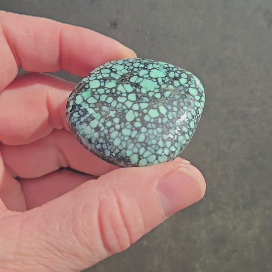 This is a beautiful large piece of rare and old Blue Boy Variscite. The unique shape and color of the gemstone make it a one-of-a-kind addition to any jewelry collection. This cabochon is perfect for those looking to add a touch of elegance to their handmade jewelry designs. Whether you are a jewelry maker or a collector, this Blue Boy Variscite cabochon is a must-have.