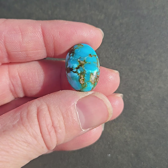 A striking piece of AAA High Blue Polychrome Kingman Turquoise with red web. This mine is known for its beautiful colors its unique matrix patterns and variations, and typically has the presence of distinctive red or brown spiderweb. In the industry, the Kingman Mine, has also set the standard for blue matrix turquoise. This stone has beautiful color play that will stand out in any piece of jewelry.