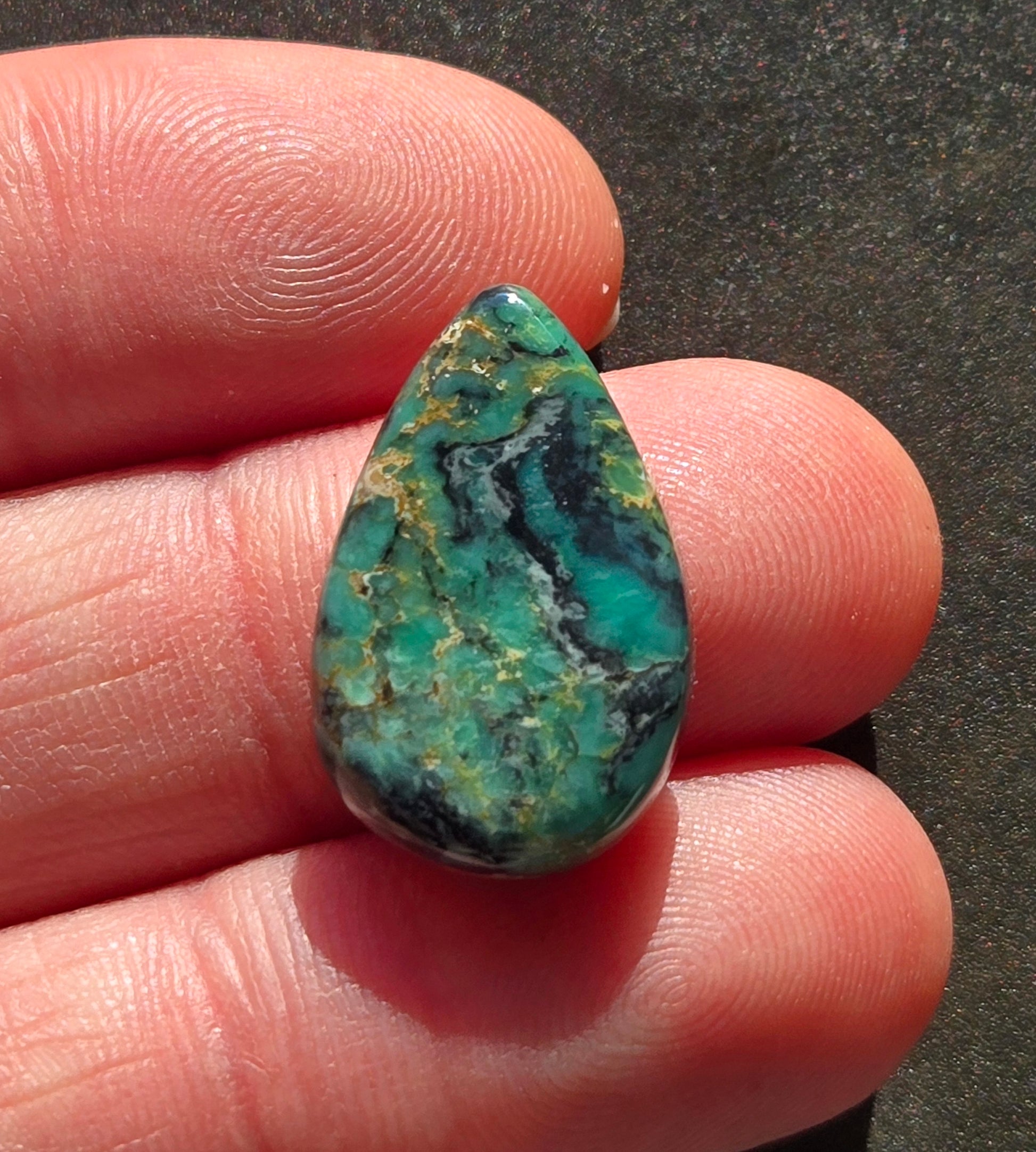 This is a beautiful piece of C&T Mine Variscite. The unique shape and color of the gemstone make it a one-of-a-kind addition to any jewelry collection. This cabochon is perfect for those looking to add a touch of elegance to their handmade jewelry designs. Whether you are a jewelry maker or a collector, this C&T Mine Variscite cabochon is a must-have.